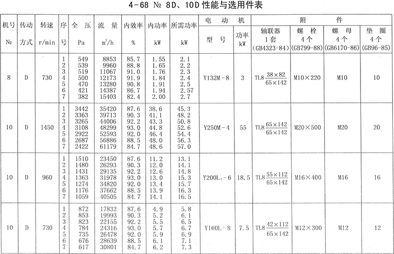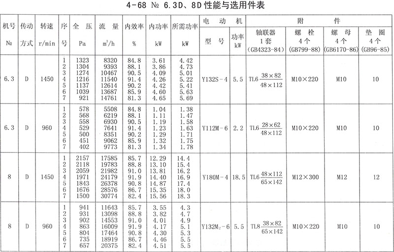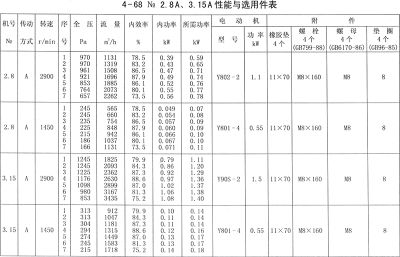 機號為No2.8 ~5的4-68型風機主要由葉輪,機殼、進風口等部分配直聯電動機組成,No6.3~20除上述部分外還有傳動部分。