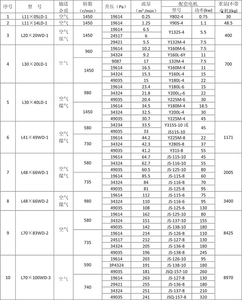 本產品是使用范圍廣的常規品種,適用于壓送清潔空氣,清潔煤氣。