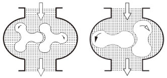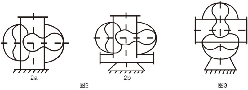 臥式——鼓風機的兩個轉子中心線在水平面內,氣體為垂直流向(如圖2a、2b所示)