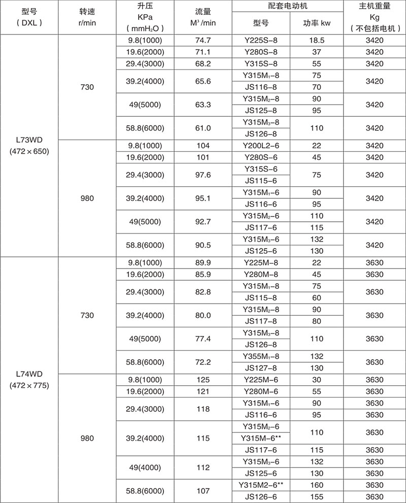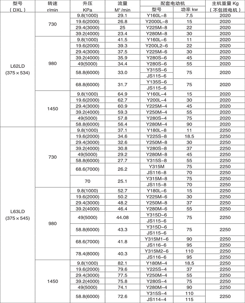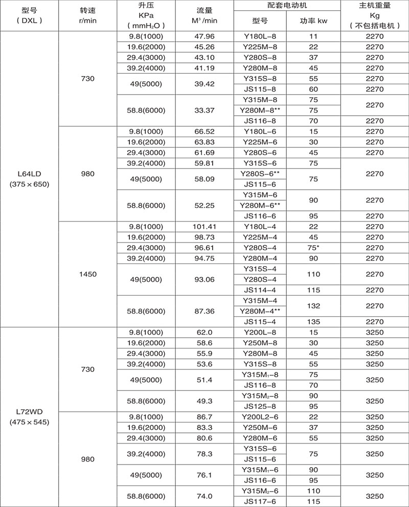 L型羅茨鼓風機系列的性能覆蓋面廣。流量從0.25-1000m³min,升壓高可達98KPa。