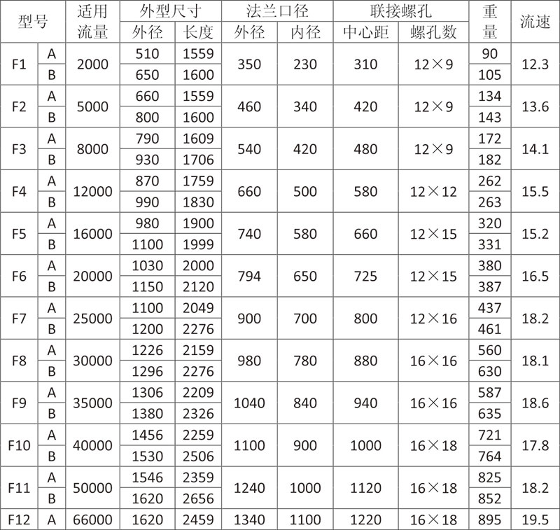F型消聲器使用風(fēng)量2000-66000m3/h,使用溫度為150℃以下,消聲器可達(dá)20-25dB(A),阻力損失小于300mmH2O(294pa)。