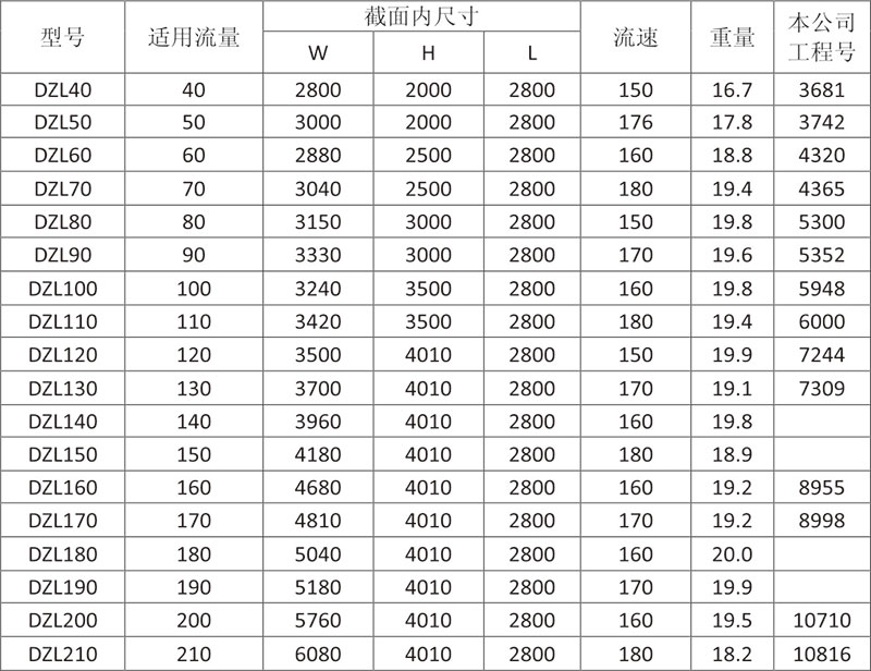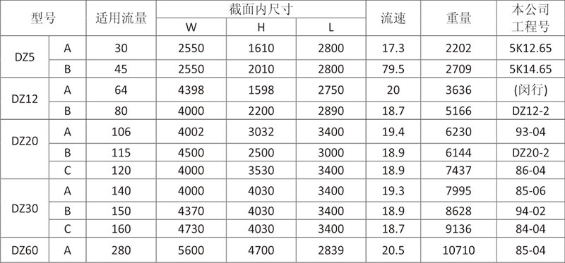 DZ型電站送風(fēng)機消聲器規(guī)格選用表